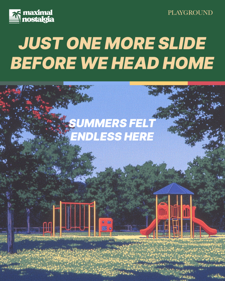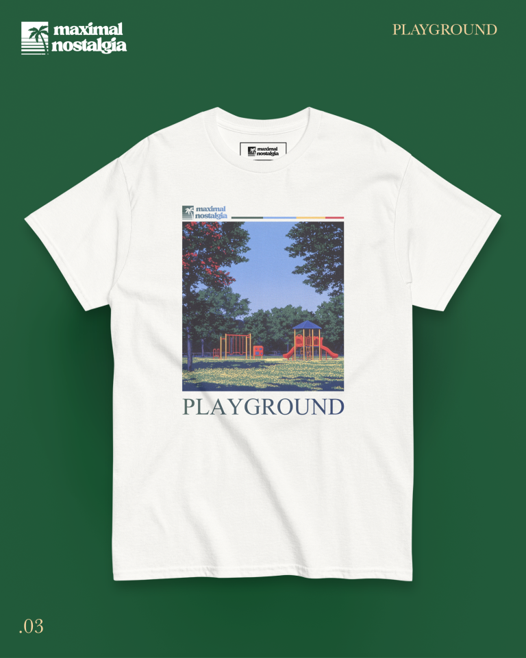 Summer days felt endless. Sun blazing overhead, sneakers scuffed, the metallic clang of swings echoing across the grass. This was the spot where stories started—and nobody wanted to leave. Introducing the 90s “Playground” Collector’s Tee. A tribute to every summer you never wanted to end.